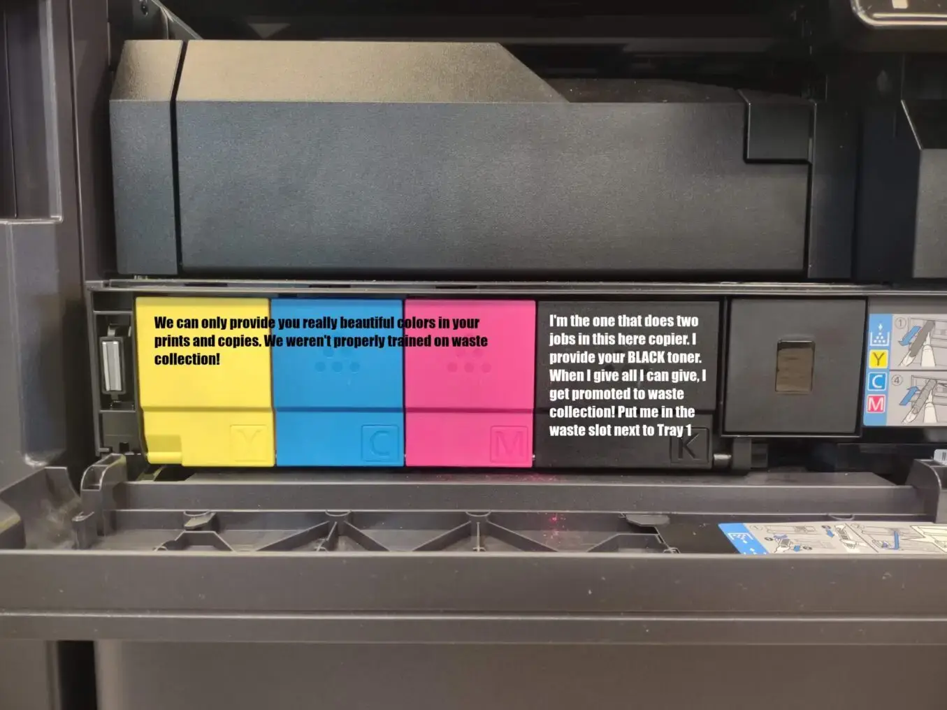 Why does the copier just waste toner? Don’t worry! The copier isn’t intentionally wasting your toner. This is just bits of toner that did not adhere to the paper during the print process. The toner delivery system operates one way only, so there’s no real useful way for the copier to put the extra toner back IN the toner bottle. (Plus, on color machines, if it tried to do this, it could make a royal mess of your next document!)