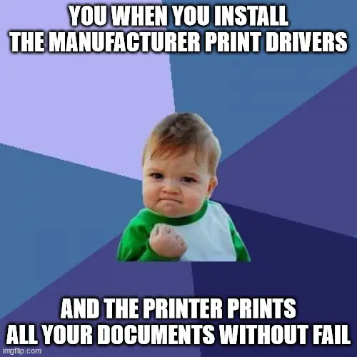 The manufacturer’s drivers, on the other hand, know everything there is to know about your printer, how to make it work exactly how you want it to work. It knows duplexing, collating, finishing, how many paper trays you have, and how many output trays you have! The two go hand in hand!
